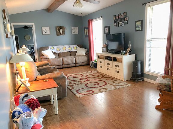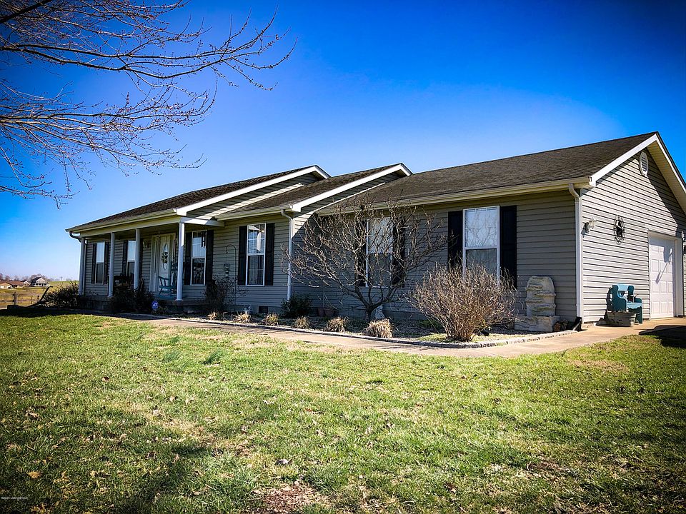 Gorgeous ranch style home just outside of Leitchfield with beautiful country views. This 4 bed 2 full bath home features wood flooring throughout, cathedral ceilings, large open updated kitchen, island, pantry, laundry closet, master suite, 1632+/- sqft, 1 car attached garage and more! Outside is a covered front porch, 1+/- acre open lot, covered back patio, blacktop drive! Call today this home will not last long!
