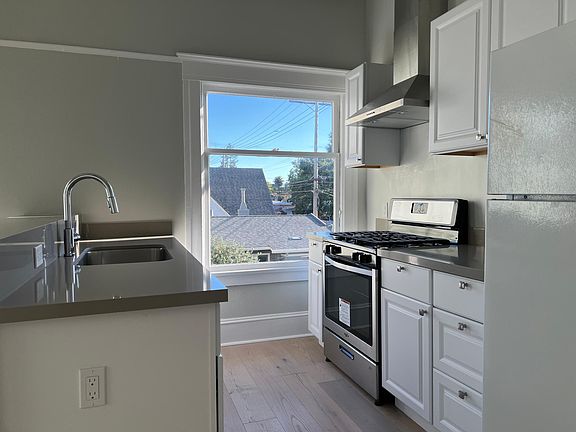 UNIT: Stunning top floor 2x1 unit blending modern amenities with vintage aesthetic! Upgrades include brand new vinyl hardwood style flooring, open kitchen with brand new appliances (gas range stove, full size refrigerator). Unit also includes in unit washer and dryer. Parking +$100.00. LOCATION: Situated in the East End of Alameda, conveniently located just a few short blocks to restaurants, shops, bars, etc on Park Street. Steps from the 51 busline. Short Drive to the 580, 880, 980, and the 24 Freeways. Also close to Fruitvale BART via Park Street Bridge. LEASE TERMS: Rent: $2,500 Deposit: $2,500 Bedrooms: 2 Bed Bathrooms: 1 Bath Lease Duration: 12 months Utilities: tenant pays gas & electric Pets: cat Floor: Top (2nd floor) QUALIFICATIONS: Minimum 3x income to rent ratio 680+ credit score Guarantors considered
