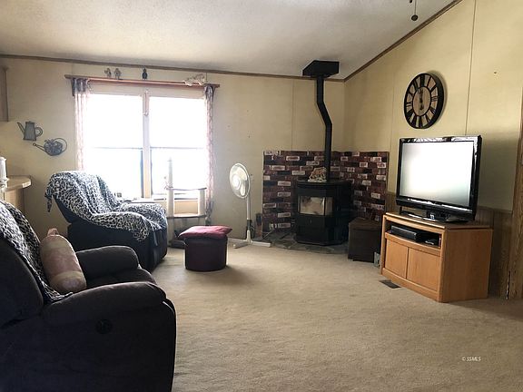 Curb Appeal, Location, and amazing wildlife makes this 3 bedroom 3 bath 1985 manufactured home the perfect home. Vaulted ceilings, 1,650 sq ft, pellet stove in the living room, hardy board siding is a huge plus, main bedroom has a walk-in closet, all 3 bathrooms have showers and linen closets, ceiling fans, 2 skylights, dual pac for heating and cooling plus an evaporative cooler. Lovely wood deck with great views, and a 2 car carport with 2 storage sheds. Laundry room with storage cabinets, washer & dryer included, Lots of storage cabinets in the kitchen as well. This lovely home is on a permanent foundation system and ready for financing.