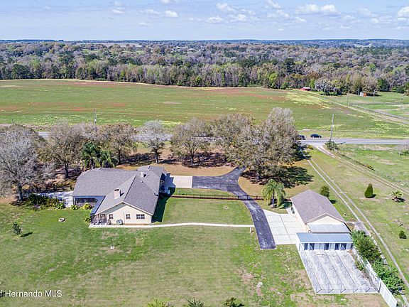 Active Under Contract Rare 10-acres with long-range views of rolling pastures + huge upgraded, well-maintained Arthur Rutenberg home (3,375 sq ft living) has 4 bedrooms + 3 bathrooms + fireplace + 3 car attached garage + full house generator (2019) + 3 car detached garage (40x26) with pull-through bays, 9' high doors + RV hookup + carport + 5 dog kennels & 5 runs w/fenced yard + a tucked away 2/2 manufactured home w/rental income to pay taxes/insurance (or use for your in-laws/guests). All 3 buildings have new roofs. NO HOA!! AG Zoning! Bring your RV/camper, boat, ATVs, horses, pets, outdoor toys...bring it all! This hilltop paradise is perfect for enjoying your own large property and all that comes with it-no rear neighbors to look at or to look at you!!! Upgraded kitchen offers granite countertops, breakfast bar, island, lots of upgraded real wood soft-close cabinets w/pull out shelves, serving bar, pantry, upgraded SS appliances (convection oven), breakfast nook - all open to the spacious family room w/gas fireplace, triple pocketing sliders to the LARGE outdoor patio where you can enjoy your morning coffee or evening wine on your covered, screened-in lanai with new brick pavers w/views that take your breath away. Perfect to add a pool! Master suite also has private views, dual sinks, garden soaking tub, separate shower, walk-in closet. Formal Living room + formal dining room. Dream laundry room! All bedrooms have walk-in closets. Tankless water heater. Ask for full feature list. 45 min to Airport. 5 min to I-75, 1 hour to Top US Beaches!! Close to Tampa for work/pla