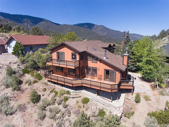 Amazing location which affords a birds eye view of Pine Mountain Club and the surrounding mountains in all directions! This spacious mountain home displays true pride of ownership! As you approach the home you will appreciate the concrete driveway embellished with beautiful stone work on the driveway and tasteful landscaping. As you enter home via a charming front porch you will be wowed by the expansive views from every window and the dramatic stairway. The first floor features a living room with soaring ceilings and both a fireplace and cozy wood burning stove, a spacious open style kitchen with a garden window for your herb garden and large pantry, a formal and informal dining area, one of which is being used as a comfortable den, a guest bedroom which could easily be an office, convenient powder room for guests, laundry room, and direct access to the two car garage which has an additional garage bay ideal for storage or a home gym. Step onto the expansive decks to enjoy the spectacular mountain views and privacy. Head upstairs via the open staircase and you will find the oversized master suite with its own private deck, a second spacious master suite with its own bathroom and energy efficient pellet stove, another oversized guest bedroom and a full bathroom in the hallway. This home features CENTRAL AC and forced air heating, a water softener, a whole house carbon filter, an RO system for drinking water, and so much more! Schedule your showing today!