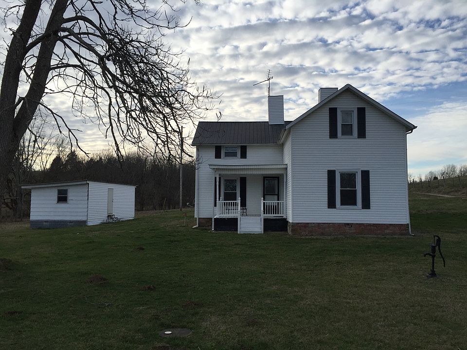 Two story house in quiet country setting. Home has original wood floors, three large fireplaces and private rooftop patio. Over 44 acres with 2 barns and a pond. Good pastureland for cattle or horses. 7 minutes from I-64 and Veterans Memorial Bypass.