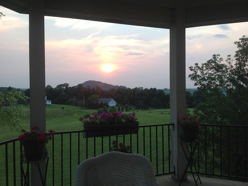 Your chance to own this country retreat that is 20 minutes from 270 and less than a mile to 33 outer belt. Enjoy the beautiful sunset from the freshly painted balcony or first floor porch that goes the entire length of the front. The interior shows off new carpet and paint throughout. The finished walk out basement is great for entertaining, it has a high definition TV projector that allows you to watch your favorite sporting event on a 8 ft. wall screen. and access to the 18 x 36 Heated in ground swimming pool with automatic cover and hot tub. Home has newer roof, windows, furnace and AC unit. Barn is 36 x 64 with tall ceiling for a half court basketball games.