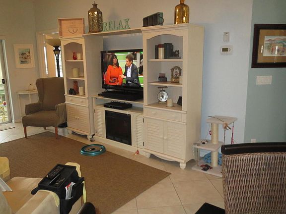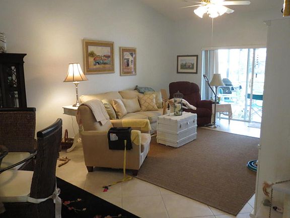 Immaculate, updated and ready to move into!! Nothing needs to be done in this spacious waterfront villa. The kitchen has been recently updated and has stainless appliances that are only a year old. The large eat-in kitchen has loads of cabinets and a pantry. The kitchen opens to the spacious dining room/living room and den/office. The living room has sliders out to the extended covered screened patio with a lovely view of the lake. The master also has a view of the lake and a large walk-in closet. The tile throughout is set on the diagonal. The hot water heater is new. The a/c is approximately 3 years old. Must see to appreciate. Dining room fixture and curtains do not convey.Furniture is negotiable.