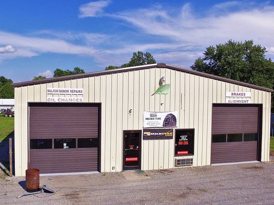 COMMERCIAL BLDG. - TIRE SHOP/GARAGE - RUSSELL SPRINGS, KY. Online Only Auction ending on Wed. August 31st at approx. 6:00 p.m. EDT. This 2,500 square feet steel building has a full concrete floor, two bays capable of holding 4 vehicles, two vehicle lifts along with an office space and three bathrooms. Nice size lobby at the front of the building with office space to wait on customers. Down the hall are two restrooms with a third being in the work area at the back of the building. Both bays span the entire length of the building (50') with one bay having a 9,000 lb. lift and the other a 12,000 lb. lift. Insulated steel structure built in 2008 with drains in the concrete floor along with an EPA certified oil/water separator tank outside of the building. All electric is run in conduit with air and water hoses ran throughout the building. A large storage loft is located on the second level of the office and was used for tire storage in the past. Located right on US 127 just a couple miles north of the city of Russell Springs gives an ideal location for a business.