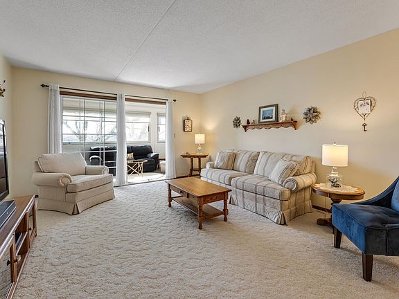 Step inside this meticulously maintained condo to find two bedrooms, two bathrooms and a huge three season porch! This spacious unit has everything you need on one level with a private wooded view to watch wildlife. Many updates such as bathroom vanities and flooring, light fixtures, paint throughout unit, newer appliances and new washer/dryer last year! The heated garage parking stall comes with additional wall storage and easy elevator access right up to your top floor unit. Enjoy a carefree lifestyle with no outside maintenance-- get rid of your shovel, snow blower and lawn mower.