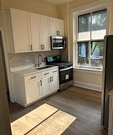 Main Entrance on Hoyne Ave. This freshly painted, fully remodeled third-floor apartment offers modern living with new appliances. The unit features two bedrooms, and one bathroom, and is located directly above a vibrant bar/ restaurant, perfect for those who enjoy being in the heart of the action. In-unit washer and dryer. $2,100.00 utilities included (water, electric, gas) 1 year