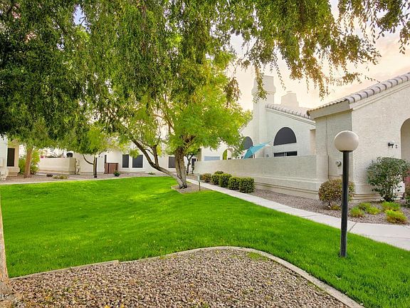In a quiet community with lush green landscaping your single level townhouse with 2 master suites awaits. Bright and open with high ceilings and lots of natural light. Entertain family and friends from the open kitchen overlooking dining area and family room and through the patio doors to the spacious quiet patio. Located right by the pool so you will actually use the spa after a days work. Truly unique location where you can walk to dinner, Starbucks, Rx and grocery. But just as importantly you are right by the 60 the 101 and the 202, the price corridor and 3 miles from downtown Chandler. Click 3D Walkthrough under virtual tour to walk through every inch of the home from a computer or mobile device.