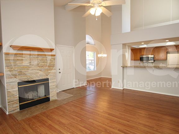 1,007 SQ FT! 2 bedroom, 2 bath condo unit in Chandler's La Buena Vista community! Desirable single story floor plan with soaring vaulted ceilings. Charming eat-in kitchen with included appliances! Formal dining space. Kitchen opens to spacious family room with cozy fireplace + sliding door patio access! Neutral interior with wood-like flooring throughout. This unit offers 2 nicely sized bedrooms, each with ample closet space! Blinds + ceiling fans. Included washer/dryer! Enjoy a private patio + assigned parking. La Buena Vista is a well maintained community with community pool + spa, HOA landscaping services, & easy AZ-101 access!