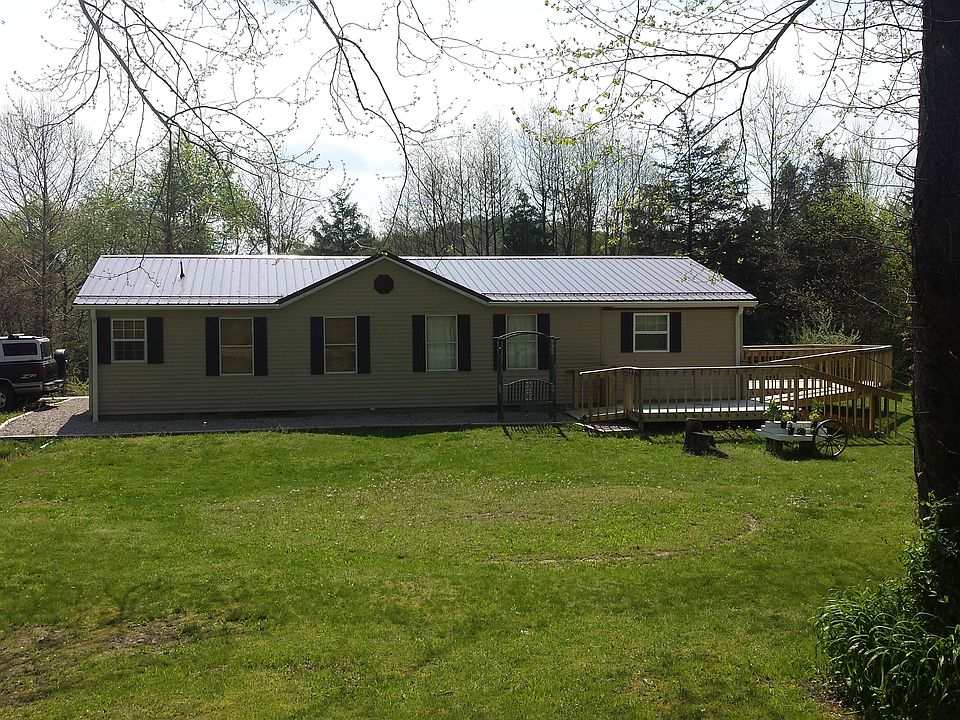 Nice manufactured home on 4.69 acres. 2 bedroom, 2 full baths, master suite, large living room with built in shelving hardwood floors and ceramic throughout, dining room, laundry room and large eat-in kitchen. Super covered back deck overlooking paver patio with barbeque area, 2 sheds. Plenty of privacy and just minutes to town.
