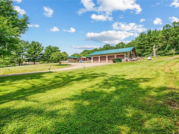 The perfect blend of mid-century charm and modern farm living on this remarkable 87.9 acre property. This 4 BR, 3.5-bath ranch-style home offers light-filled interiors & expansive living areas. Newly renovated kitchen and multiple flexible spaces throughout, including a mudroom with butler's pantry potential, a huge bonus room perfect for storage, laundry, office, den, guest suite—or all of the above!Outdoors you'll find a 19-stall barn, 60x120 free-span indoor riding arena, fenced pastures and paddocks with shelters, sheds, and water access .High-yield hay fields and an on-site spring that serves as a 2nd water source for the home.Resort-style outdoor living w/ hot tub, pool and pool house. Expansive patio areas perfect for entertaining. Whether you're seeking a private retreat, a working farm, or an equestrian dream property, this unique offering has it all. Come see for yourself what makes this modern farm a one-of-a-kind opportunity.