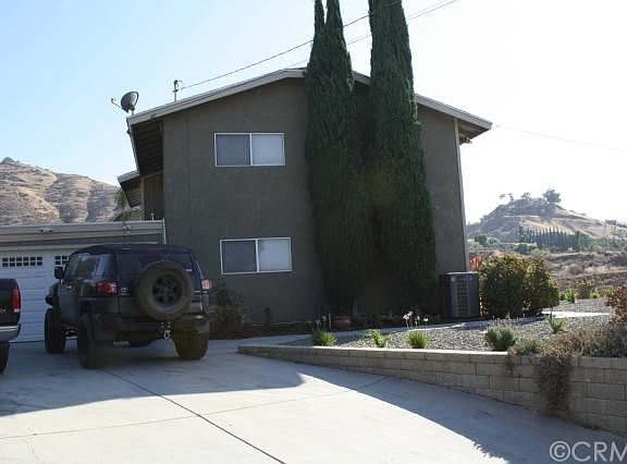 Wonderful family home located in an established neighborhood of Reche Canyon. Reasonable distance to freeways, shopping, dining, entertainment, and Loma Linda hospital. The home boasts a large 1/2 acre lot with many amenities, making it conducive to entertaining. This 5 Bed, 3 full bath property has recently been updated. Home features brand new carpet in the living areas, and (2) downstairs bedrooms. Downstairs bathroom has been recently remodeled, complete with travertine tub/shower surround. The kitchen has an island and large walk in pantry. Upstairs you will find 2 more bedrooms, with new wood laminate floors, and another recently updated full bath. The exceptional master suite is luxurious with granite counters, dark "sangria" cabinets, jetted tub, large shower, double sinks, a makeup vanity, slate floor and shower. Large customized walk in closet. The master bedroom has a wall of windows showing off mountain and city views. Central heat/AC was replaced in 2010 and features a hypo-allergenic filter system. Recently landscaped back yard features a large swimming pool with raised deck for entertaining, pool house and large attached shed for storage. Lawn and flower beds are on automatic sprinklers with drip system, making yard maintenance minimal.