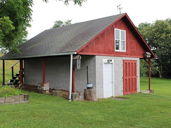 This 3 bedroom 2 bath brick ranch home sets on 5.3 acres. Has Kitchen, dining room combination, has laminate flooring throughout with newer propane furnace, has a one car garage, also has large 2 story out building and single story out building. Lots of apple, pear, and chestnut trees. All on flat ground.