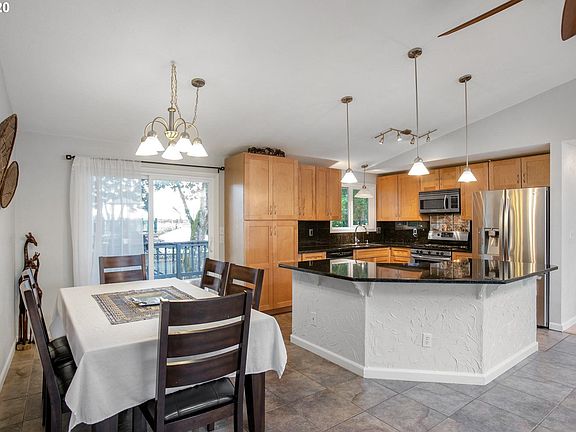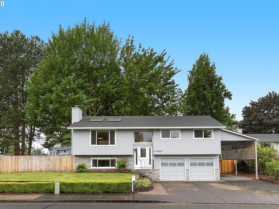 Nicely updated home in Rock Creek Neighborhood. Open concept family room and kitchen area with vaulted ceilings. Updated kitchen cabinets, slab granite countertops & ss appliances. Lots of light with two large skylights in family room. Guest living quarters in the basement with full kitchen and bath. Separate entrance into guest qtrs. Master bedroom & bath double closets. Office/shop in back of garage. Golf course located in the neighborhood. Close to hwy 26, shopping, Intel and Nike.