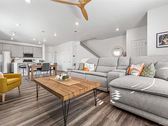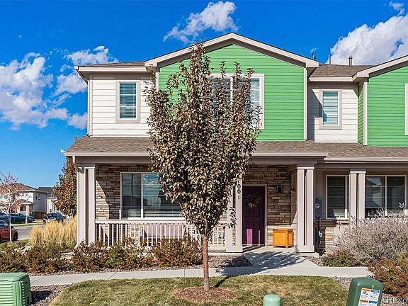 Situated in the award winning Painted Prairie community this corner unit townhome is move in ready. With a modern open floor plan the main floor is perfect for entertaining. A rare find the upper floor features four bedrooms including a spacious master. Better than new construction this immaculately maintained home features updates/upgrades including new faux wood blinds, curtains, recessed can lighting, ceiling fans and a custom electric fireplace that heats. The stunning kitchen features 42 in cabinets, quartz counters, a large eat in island, stainless steel Whirlpool appliances including a gas stove, double oven and pantry. All appliances stay including washer and dryer. The upper floor offers a large laundry room, three spacious bedrooms and a generous primary suite with large walk in closet. Excellent options for working from home with room for a study or two. Energy Efficient appliances include the furnace, air conditioner and Rinnai Hot Water Heater. Smart features include the garage opener, front door lock, thermostat and the Simply Safe security system. Enjoy the convenience of the two car attached garage with great storage. The crawlspace is easily accessible and has excellent storage options and a full concrete floor. Enjoy the outdoors on your spacious front porch or explore the over 30 acres of parks. FUTURE community additions include a dog park and Town Center. Enjoy Mulberry Park just one street away or High Prairie Park with over 22 acres of trails and parks. Social community events include seasonal farmers markets at High Prairie Park, yoga in the park, garden plots, movies in the park, multiple clubs to join and so much more! Easy access to transit, Light Rail and I70 and E470. DIA is just 10 minutes away, The Gaylord is 5 minutes away, Downtown Denver, Buckley Air Force Base and UC Health Anschuetz Medical Center are all 20 minutes away. Seller is offering a $2,500 credit towards buyers closing costs, prepaids or a rate buy down.