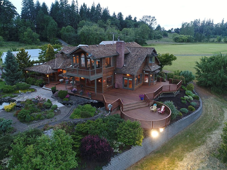 Exceptional entertainer offers a private and serene setting that is filled with light and large open spaces. Extensive remodel in 1996 w/open great room on the main floor, kitchen w/2 large cook islands plus a wood burning pizza oven! Gorgeous views of the meticulous gardens, pond/lake and endless views all on 33 acres. Guest house, equestrian center, mobile home, treehouse play structure, multiple storage/shop buildings & pasture!