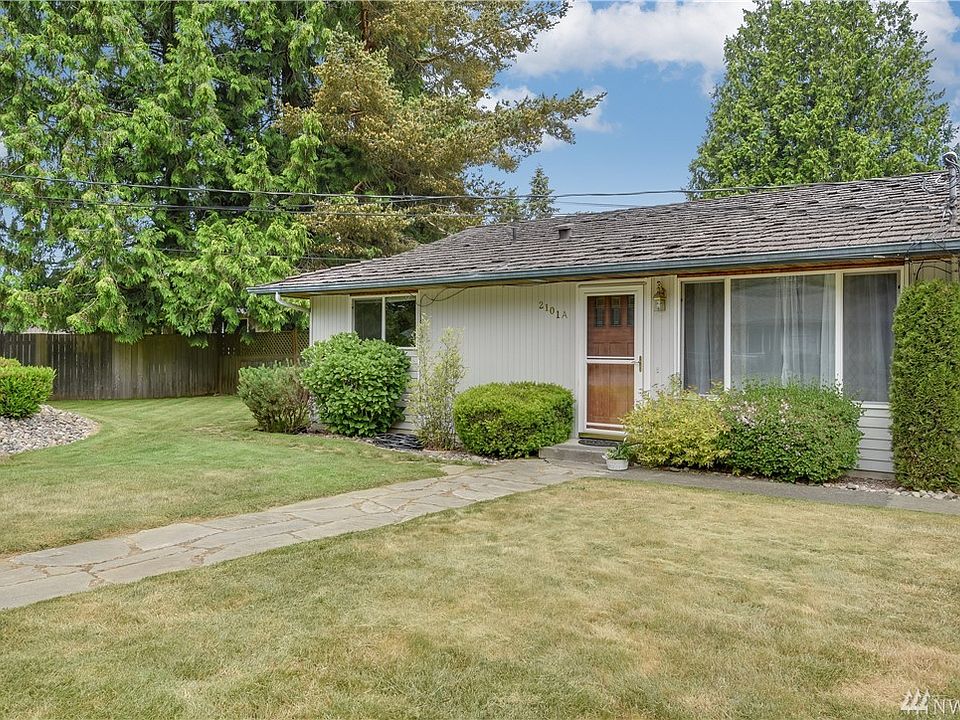 Unique well-maintained, open concept, light filled 2 bdrm duplex rambler condo in desirable Silver Lake area. Lge fully fenced backyard w/patio, fire pit & no pet restrictions! Enjoy swimming, picnics, music or a movie at Silver Lake Park. Walk to Costco, restaurants & grocery stores. Enjoy privacy and seclusion on dead-end street. Central to Boeing, I-5, I-405. Storage shed, 2 assigned parking spots, generous guest parking, Low HOA dues, all appliances stay incl full sized W/D. Welcome Home!