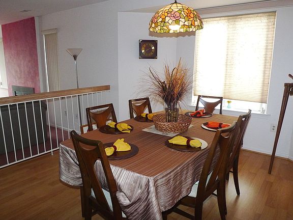 Lovely updated 2-bedroom end-unit, remolded kitchen with granite counter top and newer appliances, laminated floor, carpet in Living room. Two full baths. Two car garages. Relaxing in sunken livingroom with wood burning F/P, Garages are below the unit with private stairwell. Walking distance to Train Station. Close to all major highways.