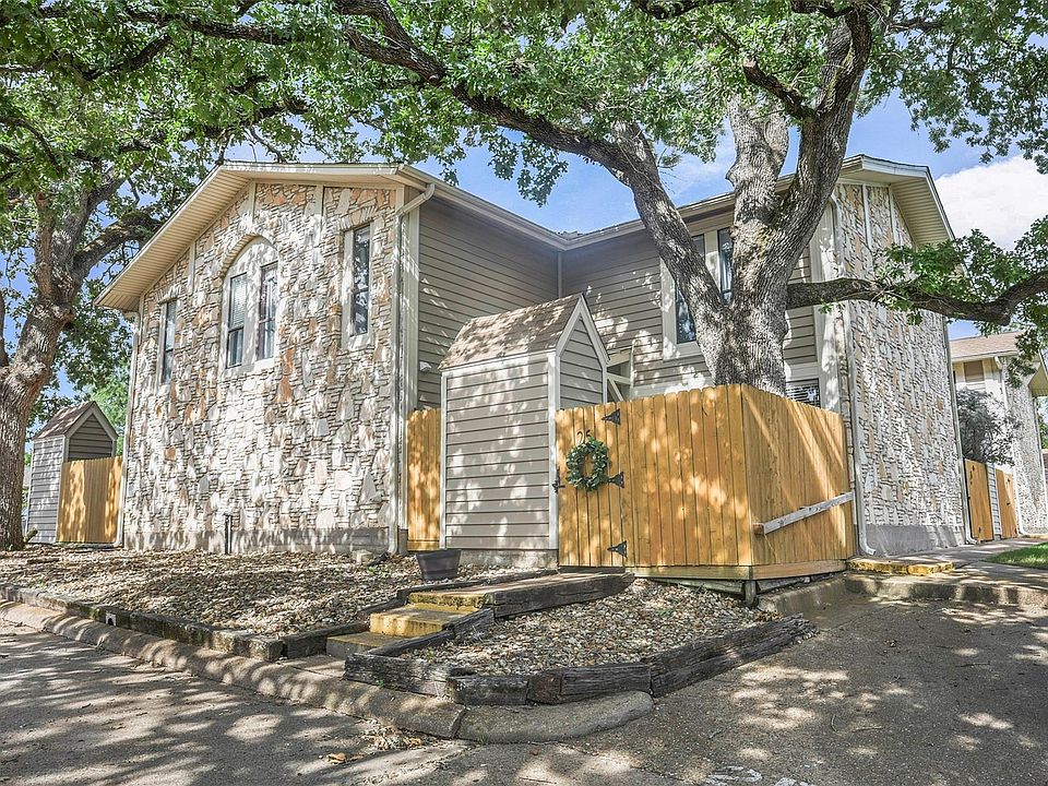 Welcome to Oak Ridge Condo #25, a rare corner-lot gem that perfectly blends comfort, convenience, and style! This beautifully updated 2-bedroom, 1.5-bathroom condo is nestled under a mature shade tree and features a private fenced-in patio, storage shed, and dedicated parking just steps from your front door. Inside, you’ll find a bright, modern space boasting brand-new kitchen cabinets, quartz countertops, fresh paint, and new flooring throughout. The open layout is perfect for both relaxing and entertaining. Located just 4 blocks from the Texas A&M University bus stop, this property is ideal for anyone seeking a low-maintenance lifestyle close to everything Bryan/College Station has to offer. As a bonus, the HOA covers water, sewer, and trash, making ownership even more affordable and stress-free.