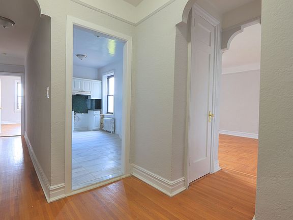 This spacious one-bedroom apartment is located in an elevator building and offers an impressive amount of living space. Step into a welcoming foyer from which all rooms branch off. The large, recessed living roomset apart from the bedroomis perfect for both lounging and entertaining. Beautiful hardwood floors add warmth and charm to this classic pre-war home. The expansive, L-shaped kitchen offers ample counter space and easily accommodates a dining table, making it ideal for home cooking and casual meals. A long hallway lined with closets leads to the bathroom and generously sized bedroom, which comfortably fits a king-size bed. The bathroom features both a separate shower stall and a bathtub. Heat and hot water are included.