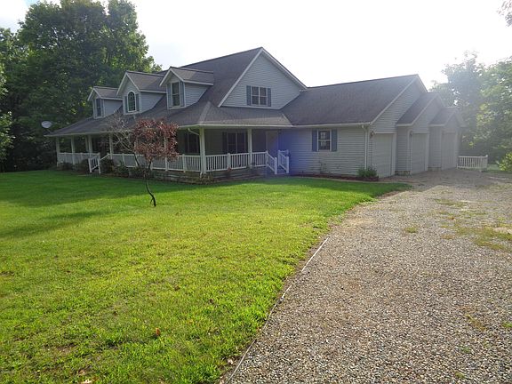 What a beautiful home and with great views. Home has an open floor plan with large rooms, 3 car attached garage, whole house generator, vinyl decking & front porch, full finished basement w/bath, rec room, workshop (both with double doors to a walk out to brick patio.Kitchen has a built in desk, pantry-lazy Susans, lots of counter space. Master bed has plenty of closet space and a master bath w/a Jacuzzi tub & a step in shower. Large living room that open to a covered deck. Open stairs to a bonus room, 2 huge 16X27 bedrooms, full bath and panoramic views. Half bath is just inside the garage entrance, Very convenient home with lots of extras. All this is on 3.21 acres. Need more acreage, We have the home next door for sale with 18.8 acres, great recreational land. Check them out.