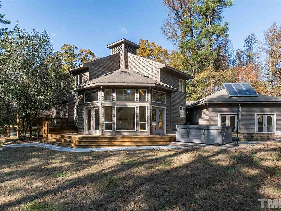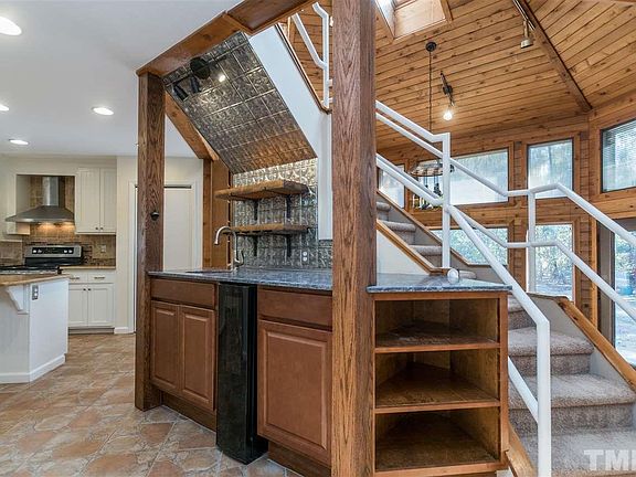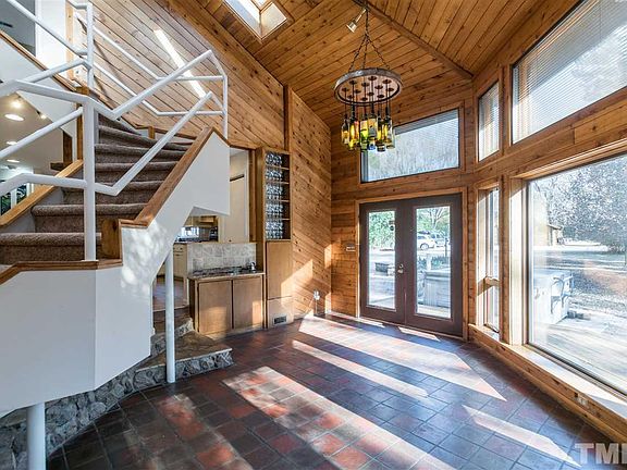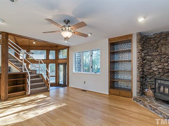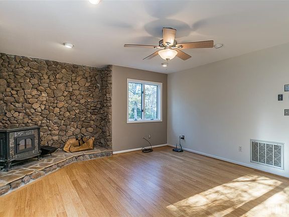 Peace and quiet in the center of the Triangle. Home is situated on two acres that back to Falls Lake Corp of Engineer Land. Close to North Raleigh, Wake Forest, RTP. A warm and inviting home that provides many rooms that have multiple uses. Many upgrades and improvements made to this home in recent years. Great room features a wood stove, stone wall and built in bookcases. Kitchen has double oven with hood, tile floors and granite counter tops. Two bedrooms/baths on 2nd floor, study/guest room/main.