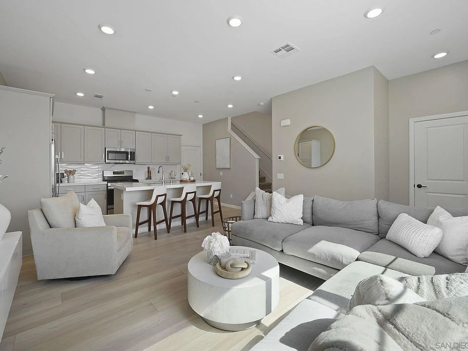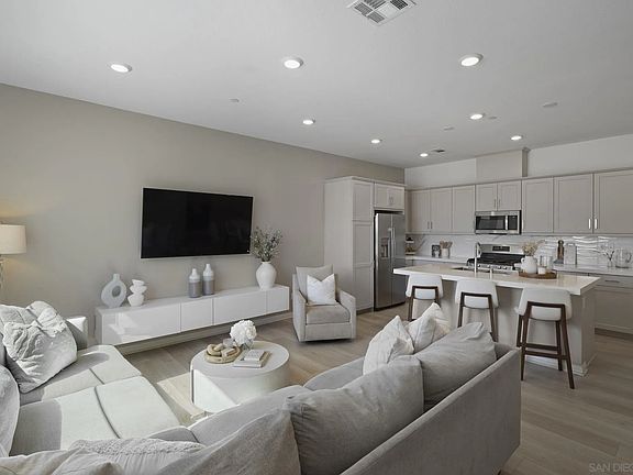Nearly new 3 bedroom, 2.5 bath townhome in the sought after Bluestone community at Côta?Vera. This home features upgraded luxury vinyl plank flooring, an open concept living and dining area, and a modern kitchen with quartz countertops, stainless steel appliances, and ample cabinet space. The primary suite includes a spa like bath with dual sinks and walk in closet. Additional highlights include a 2 car garage, in unit laundry, and fully paid off solar panels, providing energy savings from day one. Located in a vibrant master planned neighborhood, residents enjoy resort style amenities including a pool, parks, walking paths, and green spaces. Close to newer construction homes, shopping, dining, and top rated schools, this townhome combines modern finishes, sustainable energy features, and functional design. A rare opportunity to own a nearly new home with no solar payments, blending comfort, style, and efficiency in a highly desirable Southern California community.