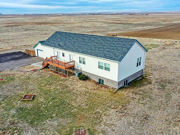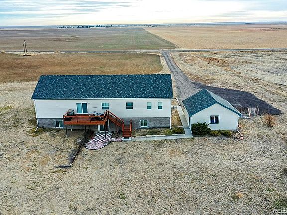 Talk about peaceful Colorado eastern plains living and beautiful views of the Colorado Rockies. The panoramic views and peace can be fully appreciated on either of the newly constructed front or rear raised decks. Recent $25,000 upgrade of all windows and patio door sets. All new carpet installed 11/20/19. Large home with 2160sqft on each level with an open floor plan that grabs you with a 'wow' immediately when entering into the home. Quarter mile off paved road.