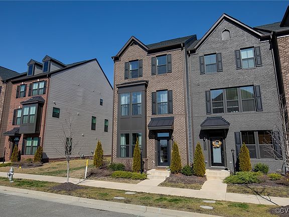 You will love this bright END UNIT at CenterPointe Townes, offering 4 bedrooms & 3.5 baths in a unique Brownstone style design. This well-maintained 1-owner home is situated in a community that features walking trails, a clubhouse with fitness center, & social & meeting spaces as well as a convenient location within walking distance to St. Francis Medical Center & minutes to shopping, dining, sports, parks, grocery stores & 288 & Powhite Pkwy. A bright foyer with coat closet welcomes you to the first floor, either from the front door or from the 2-car garage. Also on this floor, find a bedroom & full bath, perfect for a quiet office removed from primary living space or a completely private guest space. The second floor is made up of the kitchen & living area in the coveted open design concept, with a large family room, gracious dining space, and a kitchen with ample cabinets and a huge island as well as granite countertops, tile backsplash, gas cooking & stainless appliances. Rounding out this floor is a powder room & a private porch with stone gas fireplace, essentially another living space inviting you to relax and enjoy the wooded surroundings. Upstairs, find 3 bedrooms, one a generous primary suite with a huge closet, dual vanity bathroom and large tiled shower. Also upstairs, there is a spacious hall bath & a laundry room convenient to the bedrooms. Don’t miss this chance for a low-maintenance lifestyle in the heart of Midlothian!