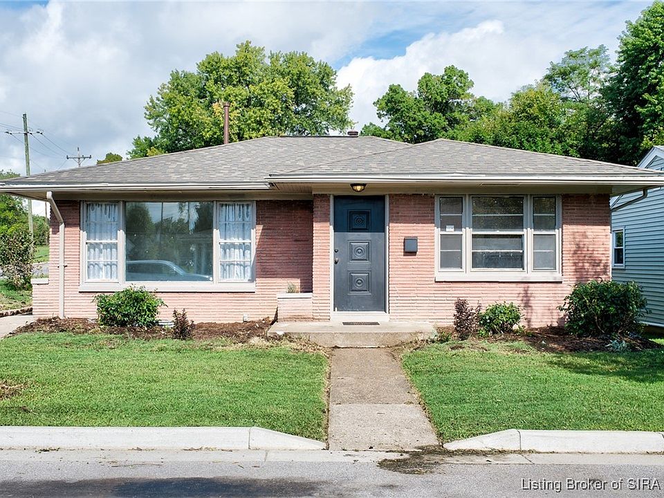 PRICE REDUCED! INVESTORS TAKE NOTICE! 1 year Home Warranty with an accepted offer. Brick Ranch with full basement, breezeway, three bedrooms, one and a half baths. This well constructed home sits on a nice corner lot convenient to shopping, schools, downtown New Albany and minutes to Louisville. NEW ROOF AND CENTRAL AIR IN LAST 2 YEARS. Washer/Dryer, stove and refrigerator and nice antique piano stays. Some rooms have new flooring and paint. Garage was removed but space could be a nice workshop or new owner can reinstall garage. A great home for a handyman or investor. *Proof of funds needed on all offers. *Property is SOLD AS-IS!. Note: Third bedroom has no egress/is non conforming. NOTE: 1 car garage can be reinstated or possibly change home to a duplex, or could be a family room or extra bedrooms.