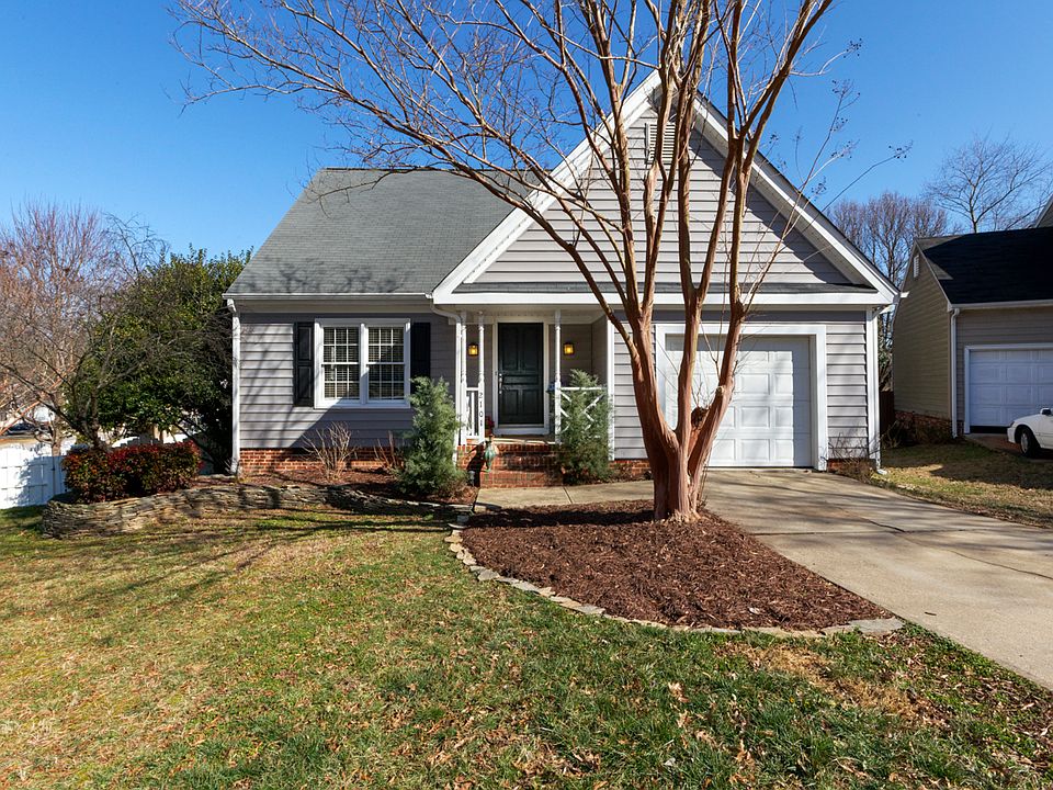 Hurry and see this adorable carefree home in an outgoing neighborhood and get ready for backyard BBQ's this summer! You can't beat a culdesac+corner lot combo! Inside you'll find vaulted ceilings and open spaces pouring in natural light. Granite sits atop white cabinets in the kitchen. A fenced in yard w a 2-tired deck is an entertaining delight. Walk to grocery and restaurants, bike to the greenway and into Durant Nature Preserve for hiking, biking and fishing. Right around the corner from North Ridge Country Club.