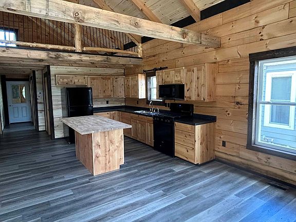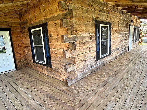Brand new log cabin was just completed, located in Bethany Missouri. This log cabin has 1354 sq. ft. living space. It has an 8x50 wrap around cedar and wrought iron railing deck. Inside it has a large 25x22 great room, combining the kitchen, dining, and living room area. Also located in the great room is a wood staircase leading up to the loft, that also has a cedar and wrought iron railing. Also on the main level is one bathroom, a 12x12 bedroom, and a 9x9 bedroom/office, 7x12 utility room with washer, dryer, hot water heater, and furnace. The log cabin was well built. All the appliances will go with the property to include gas range, refrigerator, washer and dryer.