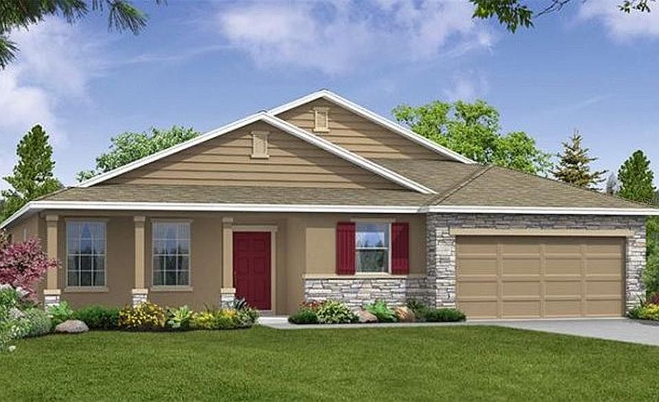 Pre-Construction. To be built. Brand new builder owned 4/3 spec home with estimated completion date of August 2023. CBS construction with full builder warranties. Terrific plan featuring large great room, 3 car garage, 9'4" volume ceilings, stone accented front elevation, crown molding, extensive ceramic tile flooring, refrigerator, blinds, lanai and much, much more.