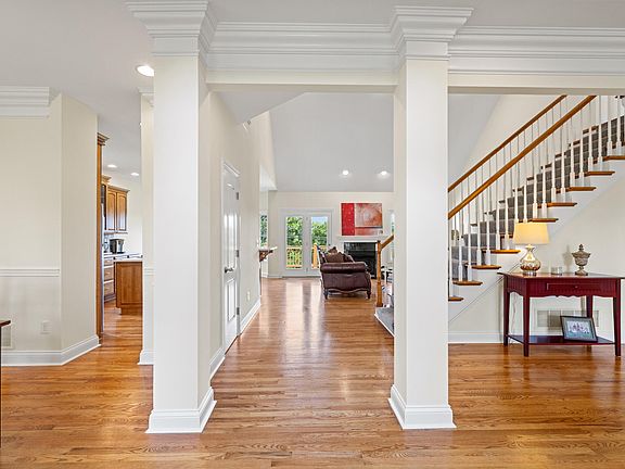 Do not miss this spacious two story 5 bedroom home located in Clarke Pointe. This home is freshly painted throughout, recently refinished hardwood floors, a first floor primary suite and open concept main living area perfect for entertaining. The kitchen is spacious with new stone countertops with bar area, stainless steel appliances and eat in kitchen area. The living room includes vaulted ceilings with gas fireplace and great views from the deck of green space and amazing sunsets. The two car garage offers bonus storage space and let's not forget about the full, walkout unfinished basement with opportunity of making the space your own. Four additional bedrooms and two full baths are located upstairs. The large primary bedroom located on the first floor offers a sitting area, walk in closet, new stone countertop with double vanity, whirlpool bathtub and separate shower. This home is ready to move in. Book your private showing!