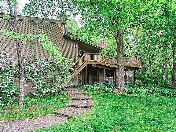 This lovely multi-level home was designed with the outside in mind. Abundant perimeter windows take advantage of the gorgeous 1.6 acre lot with walking distance to Barton Hills Country Club and the Huron River. From the moment you enter the front door you will be enchanted with the picturesque views out the living and dining room windows. The cherry kitchen includes SS appliances and solid surface counters. Cozy up by one of the three fireplaces in the kitchen nook The newly renovated master bath boasts heated floors, separate shower & tub and marble galore! Two equally sized bedrooms with plenty of closet space and oversized windows are steps away from the master suite. The lower level boasts equally gorgeous views, an office/4th bedroom, family room and third fireplace. Three car garage, iron curtain filtration, low township taxes, peaceful and natural surroundings with fabulous Ann Arbor Schools are just a few of the exceptional reasons to consider this home!