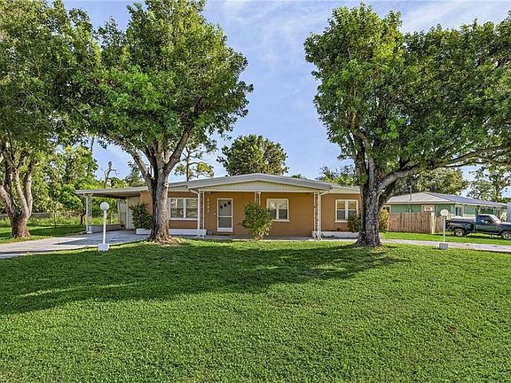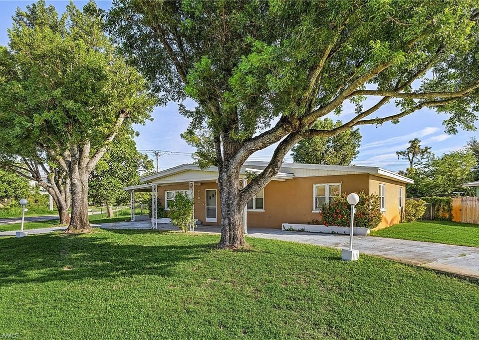Charming Single-Family Home on a prime corner lot in Fort Myers, FL! Welcome to your dream home! Nestled on a spacious 1/4-acre corner lot in the heart of Fort Myers, this beautifully maintained 3-bedroom, 2-bath residence boasts 1,504 square feet of comfortable living space. Step inside to discover a bright and airy layout, perfect for family gatherings or entertaining guests. The well-appointed kitchen comes with all appliances included, making it easy to settle in and start enjoying your new home. The in-home laundry adds convenience to your daily routine. Relax on the screened lanai, surrounded by lush landscaping and mature trees or sunbathe in the outdoor greenspace. The expansive circular driveway and carport offer plenty of parking space—ideal for your RV or boat, with no restrictions in place. The solid concrete construction ensures durability, while central water and sewer provide hassle-free living. Located close to US 41 yet far enough to escape the noise, you’ll find everything you need just minutes away—shopping, dining, entertainment, and emergency services are all at your fingertips. Plus, enjoy the added benefit of no domestic pet restrictions, allowing you to bring your furry friends along without hassle. This gem is ready for immediate occupancy. Don’t miss your chance to make this beautiful Fort Myers home your own! Schedule a showing today!