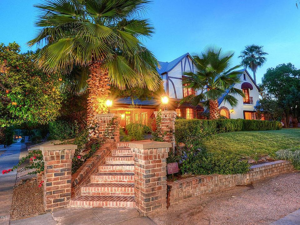 Be a part of history; 4 families have lived in this 1924 Tudor Revival Landmark Sam Hughes Home. Exceptionally restored to its original luster. Beautiful Maple & Oak Hardwood floors throughout. Gourmet's kitchen w/ original butler's pantry, original farmer's sink, granite counters, 2 dishwashers, wine cooler, large gas stove, & custom cabinetry. Magnificent LRM/DRM w/ original late 1890s chandeliers, separate office + extra large family room faces expansive BKYD w/ pool. Balconies, 0.36 acre lot w/portico & covered parking. Separate newly renovated guest house has 3/4 bathroom, kitchen with eat-in area and separate BDR. Along the bike path just 2 blocks east of the U of A. Reclamation water w/historic status for lower property taxes!