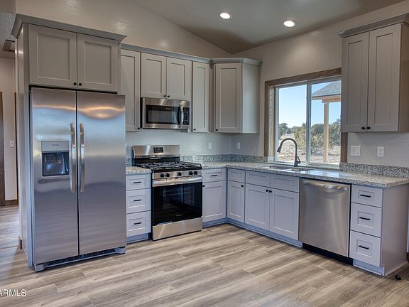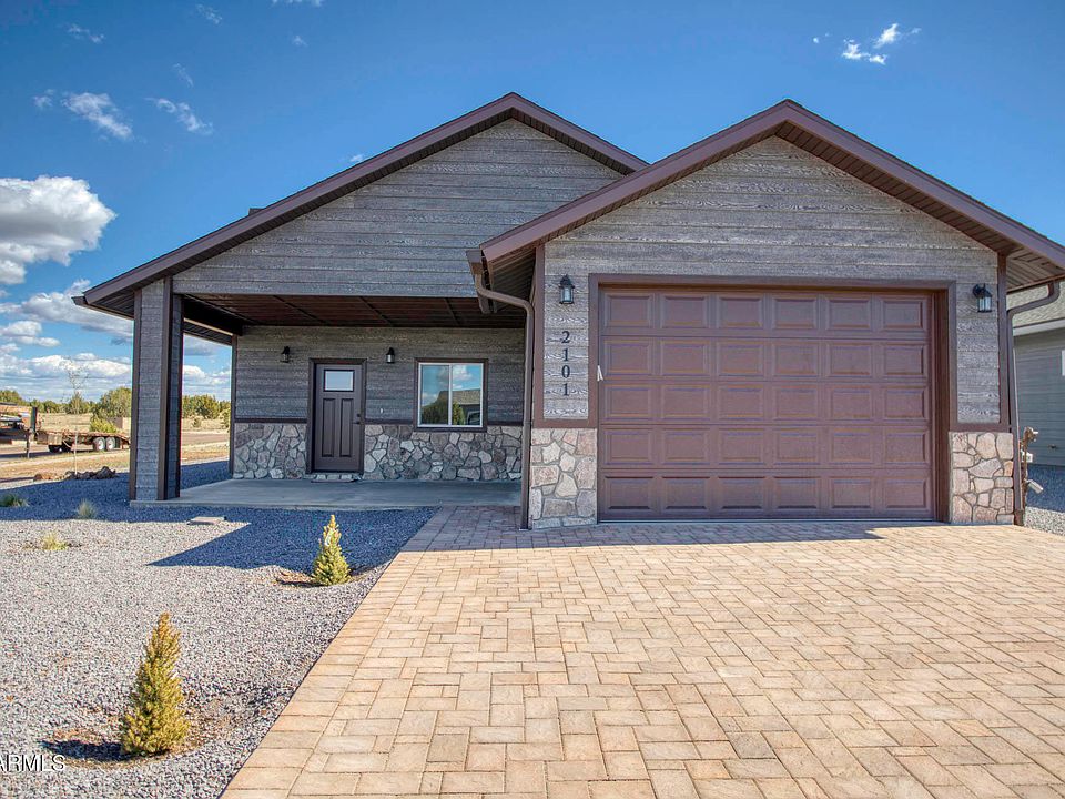 This pristine new build in Show Low Bluff welcomes you with a paver driveway, landscaped front yard, and stylish two-tone exterior accented by stone trim. Step inside to a spacious great room anchored by a floor-to-ceiling stone gas fireplace and cohesive laminate flooring throughout—no carpet in sight. The kitchen shines with stainless steel appliances, stone countertops, and rich wood cabinetry that adds warmth and elegance. The primary suite features a custom tiled tub/shower and serene ambiance, complemented by a comfortable guest bedroom, a full guest bathroom, and a roomy utility space for added convenience. An extended single-car garage offers extra storage or workshop potential, while the covered back patio reveals sweeping views perfect for quiet mornings or relaxed evenings. Imagine living in the White Mountains of Arizona where you have 4 beautiful seasons and where you can breathe in the fresh mountain air and enjoy the 40 lakes and over 600 miles of rivers and streams. In addition to the amazing fishing, this area has one of the most extensive trail systems in the southwest for hiking, biking, horseback riding, quadding and more. Sunrise Ski Resort is also just 40 minutes away with 3 beautiful mountains to ski, snow board or sled. If shopping is your interest, you will love the antique stores and the multitude of arts and craft shows that happen in the summer. The music festivals have something to fit everyone's enjoyment. Do you love to golf? There are 7 amazing golf courses, 3 that are public. The White Mountains, where this home/cabin is the best kept secret of Arizona! Come and explore and enhance your living! Pinetop-Lakeside was also voted 'Best Cabin Region in the U.S"... Embrace the MAGIC!