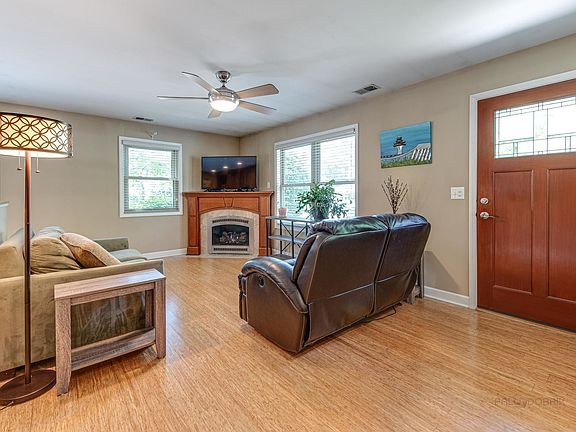 This Lovely Home is Absolutely Worry Free. Open Floor Plan. Newer Kitchen with Hardwood Cabinets, Quartz Counters, Travertine Floor, and Stainless Steel Appliances. Newer Bath. Newer Fireplace with Gas Log and Starter in Living Room. Can Lights. The Home has been Rewired. The Exterior has had all the Siding Replaced with JAMES Hardie Siding. Newer Driveway and Garage Door. Gutter Guards Installed. Most Windows Replaced. Newer Roof and Furnace Too! Crawl Space Insulated. Home is located on a quiet street close to shops, school, library, park, train, and Post office. Hurry, this is truly as pretty as a picture! Seller willing to leave Snowblower for new buyer.