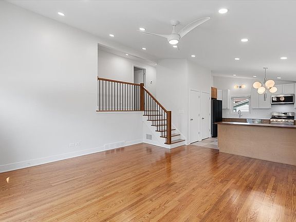 Available Now! This 4bedroom split level is on a large double lot and has been fully renovated! The main living room features vaulted ceilings and is open to the eat-in kitchen with a new staircase railing open to the second floor. The kitchen also has vaulted ceilings, and has brand new cabinets (wood tone lowers and white uppers), white quartz counters and backsplash, all new stainless steel appliances (including a gas range and a dishwasher) and stylish porcelain tile flooring. The kitchen has a pantry closet, room for a full dining table with modern chrome chandelier, and has a breakfast bar open to the living area with a live edge walnut counter. The 2nd level has 3 generous bedrooms, all with organized closets, 2 linen closets; and a new bathroom with a tub, porcelain tile floor, and large custom size medicine cabinet. Primary bedroom fits a king bed, all other bedrooms fit a queen bed. The finished walk-out lower level has large windows, a family room, a 4th bedroom, utility room (with new washer/dryer and utility sink); and a full bathroom with walk-in shower, porcelain tile floor, and large custom medicine cabinet. The home has new windows, new roof, insulation, interior and exterior doors and hardware, light fixtures, closet organization, window shades in all rooms (room darkening in bedrooms, with remote control in living room), new bathrooms, new kitchen, new furnace, updated electric and plumbing, and all new appliances. New 5' cedar fence fully encloses the DOUBLE CORNER lot with a huge back yard; 2 car garage and plenty of street parking; brick paved patio right outside the kitchen door. Enjoy living close to the Lake, Downtown Evanston, Central Street, Beck and Butler Parks, North Shore Channel Trail and Skokie Northshore Sculpture Park, Evanston Township High School (ETHS), 1 mile to Davis St El stop (Purple) and Metra stop (UP-N), and easy shopping options including Old Orchard Mall. Dogs and cats allowed, 2 pet total, up to 75lbs each, with $50/month/cat and $100/month/dog. No smoking inside the home. No sight unseen applications. Rent must not exceed 35% of verifiable income (@ $4445/month rent, this is income of $12,700/month or $152,400/year). The primary applicant must have a credit score of 670+. Any other person whose income is needed to qualify for the rent must have a credit score of 640+. Regardless of if a person's income is used to qualify for the rent, all people who are over 18 years of age and will reside in the property must complete a background check. Please include copy of Driver's License or State ID when applying. $500 non refundable lease fee, no security deposit. Available thru 6/30/2026 for $4700. Landlord will agree to a longer lease. Landlord will pay for water/trash, regular landscaping/mowing, and shoveling of public sidewalks. Tenant will pay for heat/gas, electric and will be responsible to shovel sidewalks inside the property lines. Landlord/owner is a licensed Real Estate Broker in IL, and owner is the listing broker.