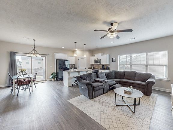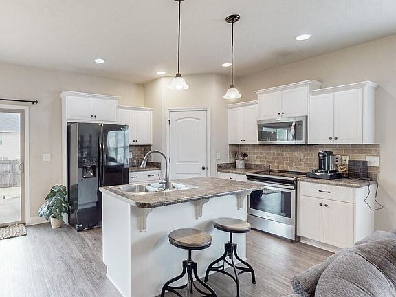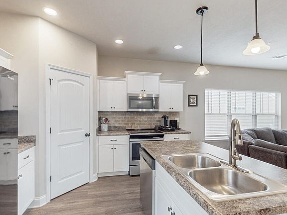 Welcome to this cozy 3 bedroom, 2 bathroom single story home with a nice open floor plan with ample natural light throughout! As you step inside, you'll find easy-to-maintain vinyl wood flooring that gives the space a warm feel! The living room includes a ceiling fan for a comfortable atmosphere! The kitchen is great with an island that has a breakfast bar, a walk-in pantry for storage, beautiful backsplash, recessed lighting, a range, built-in microwave, dishwasher, and the refrigerator is included! The dining room opens to the kitchen, providing a wonderful space for entertaining! The owner's suite is a comfortable space with a ceiling fan, a good-sized walk-in closet, a double sink vanity, a framed mirror, a walk-in shower, and a soaking tub! The spare bedrooms offer plenty of space for everyday living! The guest bathroom also has a framed mirror for an upscale look! You'll find a convenient laundry room for your washing needs! Step out onto the patio to see the fenced backyard, perfect for outdoor activities or relaxation! The two-car garage offers covered parking and storage space! This home also features 2-inch wood blinds for privacy and light control! What a great opportunity for those looking for a comfortable living space! Qualifies for USDA financing!