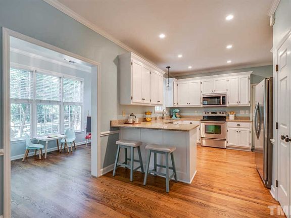 Lovingly maintained beauty perched on a perfect corner lot in friendly Colony Woods. Bright & sunny plan with fresh paint, gleaming hardwoods, cozy gas fireplace & custom details. Updated kitchen featuring stainless steel appliances, granite counters, abundant cabinets & generous pantry. Master suite boasts dual vanities & spacious closet. 1 car garage with room for a workshop or storage. Relax on the screened porch overlooking the shady yard. Short drive to restaurants, shops, UNC/Duke, or RTP. 3D Tour!
