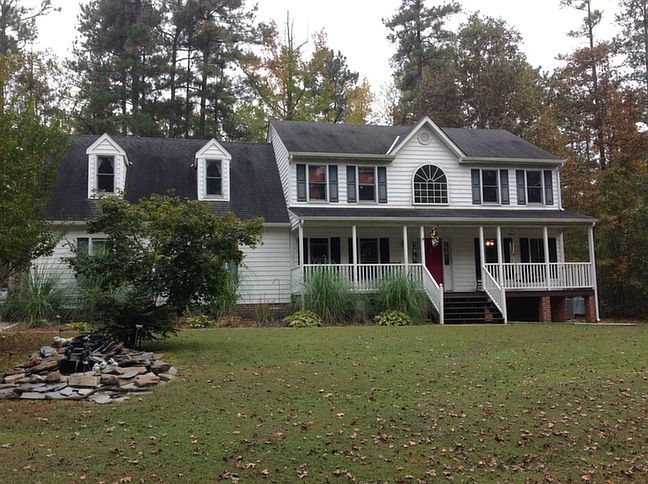 Need space & privacy? This Colonial w/full front country porch, screened rear porch & deck sits on 2.25 private acres. Upstairs large master comes with private bath/shower with dual updated vanities and skylight, along with a large walk-in closet. Spacious eat-in kitchen w/hardwood floors, large bay window, newer appliances, laminate countertops and plenty of cabinet & counter space. Family room boasts a beautiful stone gas fireplace and French doors, leading to a screened-in porch. 2 story foyer with hardwood flooring flows to a formal dining room. Bonus room on 2nd floor can serve as 5th bedroom/game room/theater with built-in book cases & storage closets. 2 Car attached garage. Newer HVAC. Tool shed. Wired for generator. ADT ready!