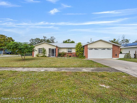 This charming home is in an amazing location in Palm Bay close to everything you could want! Only a few miles from the water. This beautiful home is 4BD, 2BA, and 2CG. This home is a blend of modern and comfort. This showcases an updated kitchen with ample room and storage open for entertaining. New roof and storm shutter give you a peace of mind. This home is perfect for entertaining inside and out. Don't miss out on this lovely home.