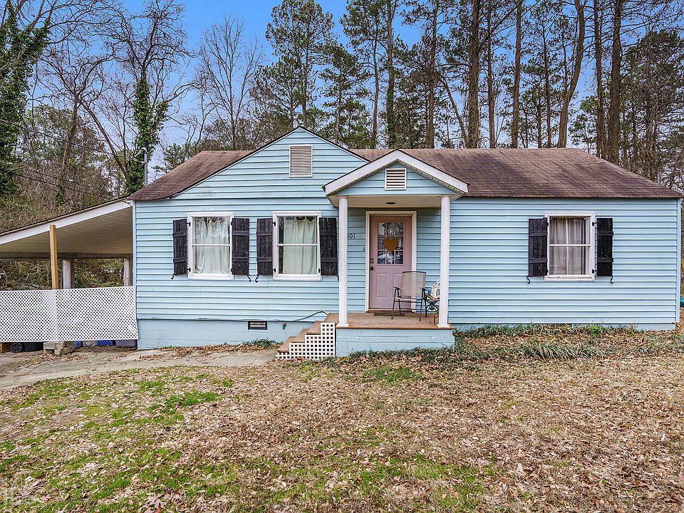 Come see this 2 bedroom 1.5 bath ranch in the quiet subdivision on Hi Roc Shores in Conyers! With its own lake and private beach on Hi Roc Lake, this charming ranch is sure to be a great fit for someone looking for a starter home with access to a private body of water! Upon driving up to the property there is a 2 car carport and both front and back yard access. Upon entering you are greeted with dark hardwood flooring that extends through the living room, dining room and bedroom areas. The bathrooms and kitchen are laminate flooring and off of the kitchen is a laundry room with washer and dryer hookups! The washer and dryer are included as well as a new hot water heater! The master bedroom has an adjoining half bath, while the full bath is off of the common hallway. The kitchen is joined by the dining room off to its side which offers an entryway to the outside covered carport. The backyard offers plenty of space for a fire pit and bar-b-q-ing with friends. The HOA fee is minimal and offers quick fixes if needed, not to mention provides private well water to the residents of the sub division. It is within 4 miles of Gwinnett County.
