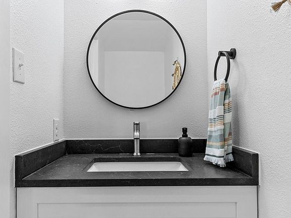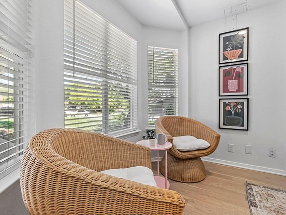 Outside you will find a photo worthy patio with custom tile work perfect for enjoying your morning coffee or having a nightcap with friends. The yard has been completely xeriscaped and includes a double hammock, cornhole, and bar height picnic table.