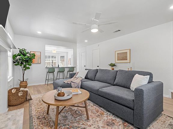 Light filled completely updated home with natural white oak hardwood floors downstairs throughout the living and kitchen area. Sit back in the thoughtfully designed living area and watch the 50" TV. Enjoy your complimentary Keurig coffee in the well appointed kitchen which features quartz countertops and stainless steel appliances accented by white shaker style cabinets along with all kitchen essentials. Half bath conveniently located downstairs along with full size washer/dryer.