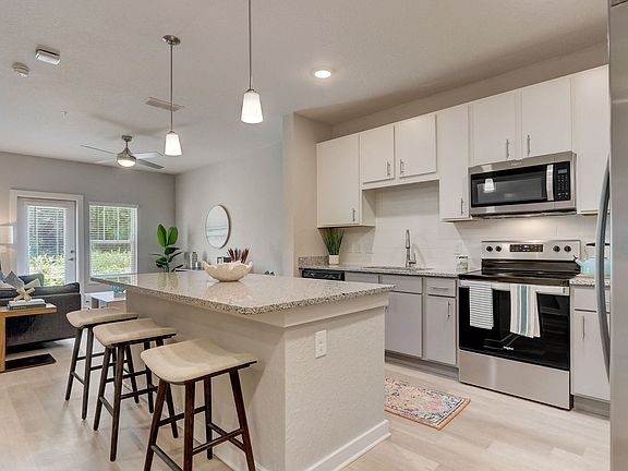• Exterior features: 9-Foot Ceilings, Availability 24 Hours, BBQ/Picnic Area, Barbecue, Business Center, Co-working Spaces, Coffee Bar, Communal Kitchen, Designer Lighting, Designer Tile Backsplash, Efficient Appliances, Free Weights, Game Room, Garden, Green Space with Outdoor Games & Sports Equipment, High Ceilings, High-speed Internet Ready, Kitchen Islands, Lush Tree Gardens for Relaxing, Lush Tree Gardens for Relaxing and Outdoor Recreational Areas, On-Site Maintenance, On-Site Management, Online Maintenance Portal, Online Rent Payment, Outdoor Fire Pit and Seating, Outdoor Lanai with Covered Seating Areas, Outdoor Recreational Areas, Package Receiving, Pet Park, Soaking Tub, Stainless Steel Appliances, Stone Countertops, TV Lounge, View Type: Premium Views of Lake Apopka, Water included in rent, Wood-style Flooring