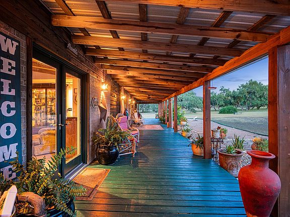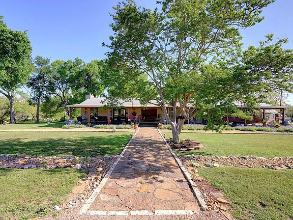 Deep Skies Ranch offers all the starry nights that you can dream about. This ranch styled home is truly a Wimberley classic sitting on 5 acres of beautifully manicured acres that is fenced and cross fenced. The pasture is perfect if you would love to have some chickens and a few donkeys. Three sides of the home have a wrap around porch to shade you from the Summer sun and the back porch living doesn't get much better than this with a covered bar-b-que pit area, an open lawn, a fire pit porch and plenty of twinkle lights. The home is a traditional ranch style with three bedrooms, 2 baths, and an office space area. There is a detached studio/game room/music room that is detached from the home and is approximately 350 sq. feet. The garage has 4 bays. 1 bay is completely enclosed with a window unit and a loft above. The other three bays are open with a concrete floor. The metal shop is approximately 1500 sq. ft. with 6' sky lights so that the sun can shine in. It has a regular front door and two open roll up doors on each end. There is an attached covered area with a small office space and extra storage that is approximately 1020 sq. ft.. If you are a gardener then the Greenhouse and raised beds will suite your needs. This property is completely fenced and crossed fenced with a large circular driveway and two gates. The back pasture is about 2 acres, the shop sits on 1 acre and another two acres are homesteaded. If you are looking for a property that you have your home and your business on the same property you should come and take a look. It's not every day that you find a property that can offer that. Across the road is a 700 acre conservancy land parcel.