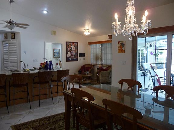 Rare Opportunity to purchase a Gorgeous Home on a Cul de Sac in Beautiful Paradise Palms. Four bedrooms and 3 baths. Double Door Entry to Wide Open Living Room. Updated Kitchen with light wood cabinetry, granite countertops and stainless appliances. Large family room with fireplace. Split Bedroom plan. Tile Flooring - Vaulted Ceilings - White high vaulted Pool Screen Enclosure. Pool and Spa. Two car garage. Huge oversized yard. Hurricane Accordian Shutters throughout. Excludes Dining Chandelier.